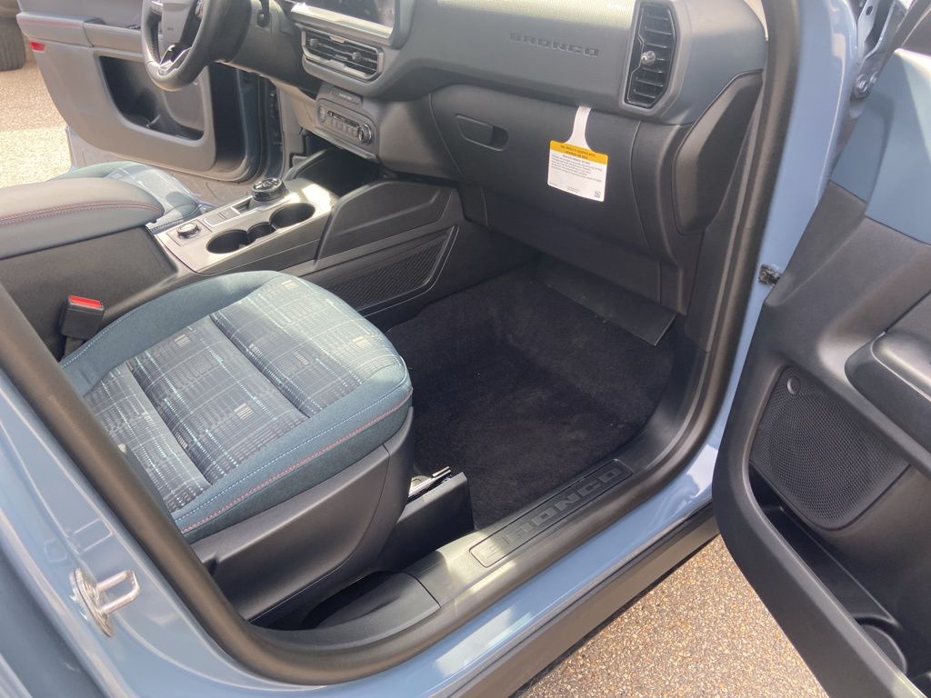 I got a 2025 Big Bend with the black diamond off road package. The steel modular front and rear in combination with bush guard gives this year model. A very aggressive off road look. With the ability to easily mount accessories and power them with the factory installed auxiliary switches. Hitch receiver seamlessly mounted into the rear steel bumper flanked by some very chunky recovery points. The upgraded aluminum rims wrapped with Continental all-terrains. It make this the most capable bronco sport yet. The interior of the 2025 has been updated with a new 13 inch touchscreen with Android Auto and apple car play. The lines of the dash flow elegantly from the new infotainment screen to the new all digital 12 inch gauge chaster. Toggling through the different modes on the gauge chaster is very intuitive, and all the displays are laid out very cleanly. Moving from gauge chaster the center storage cubby just below the infotainment screen there is a wireless charger and USB/ USB-c ports. The passenger side of that same cubby gets a handle and a matching one on the roof just in case the driver bucks a little too much. The passenger also gets a mesh storage area. That leads us to the fact this vehicle has tons of storage options all throughout. You have pockets on the sides of the front two seat big enough for the latest new phones. Very generous door storage on all four doors plus huge glove box and center console with 12 volt outlet. The back side of the center console has air vents and another 12 volt outlet plus a 110 outlet. Now getting to the cargo area it is massive for a crossover SUV. With off road package you get a cargo management system and a very nice rubber mat. Under that there is a full size tire plus scissor jack and funnel to use with the capless filler system. On the liftgate there isa pair of very bright led lights turned on with a switch in the cargo area. This feature packed vehicle has tons awesome gadgets and hidden a little homages I spend all day just talk that. At the end of the day it is car. So how does it drive. It is wonderful, the steering and pedal response is beautiful. Rides very smooth and little to no road noise going down the highway. The active cruise control and co-pilot 360 have been very handy. The car literally drives itself most of the time. There is not enough good things I could same about this car. I love it and you pick one too. You will see what I mean. - 5.0