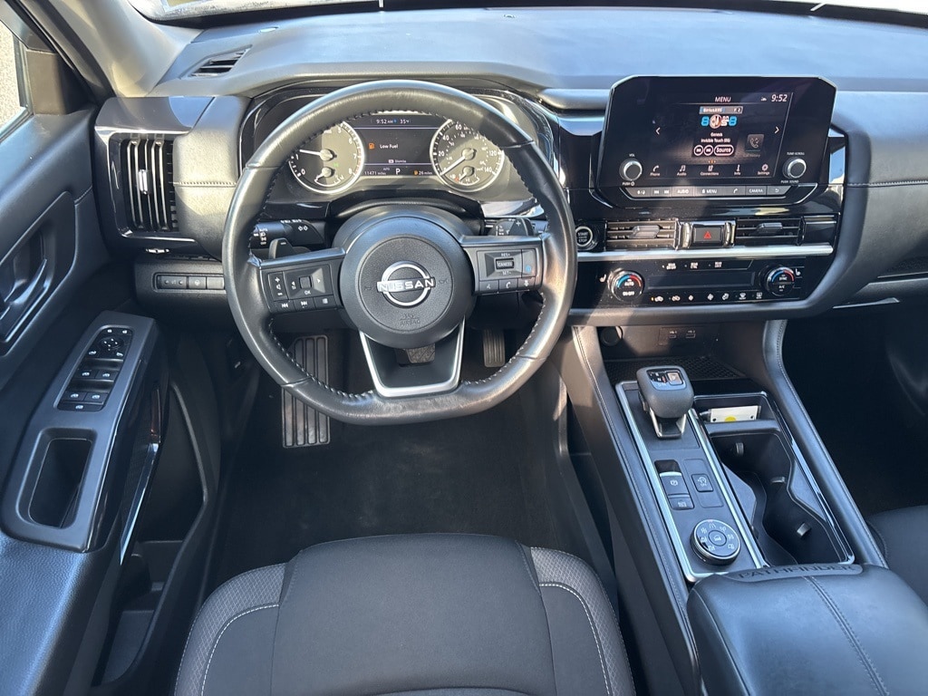 Nissan Pathfinder SL. Purchased the car July 2021 when they first came out. I love everything about this car. I have not had any issues to date. Just went thru a snow storm with about 7inches of ice and snow. I am on a pretty steep hill and zero issues in the snow and ice. I really can't think of an issue i have with this car. I have taken this on 9 hour trip with a total of seven and had no issues in the mountains. - 5.0